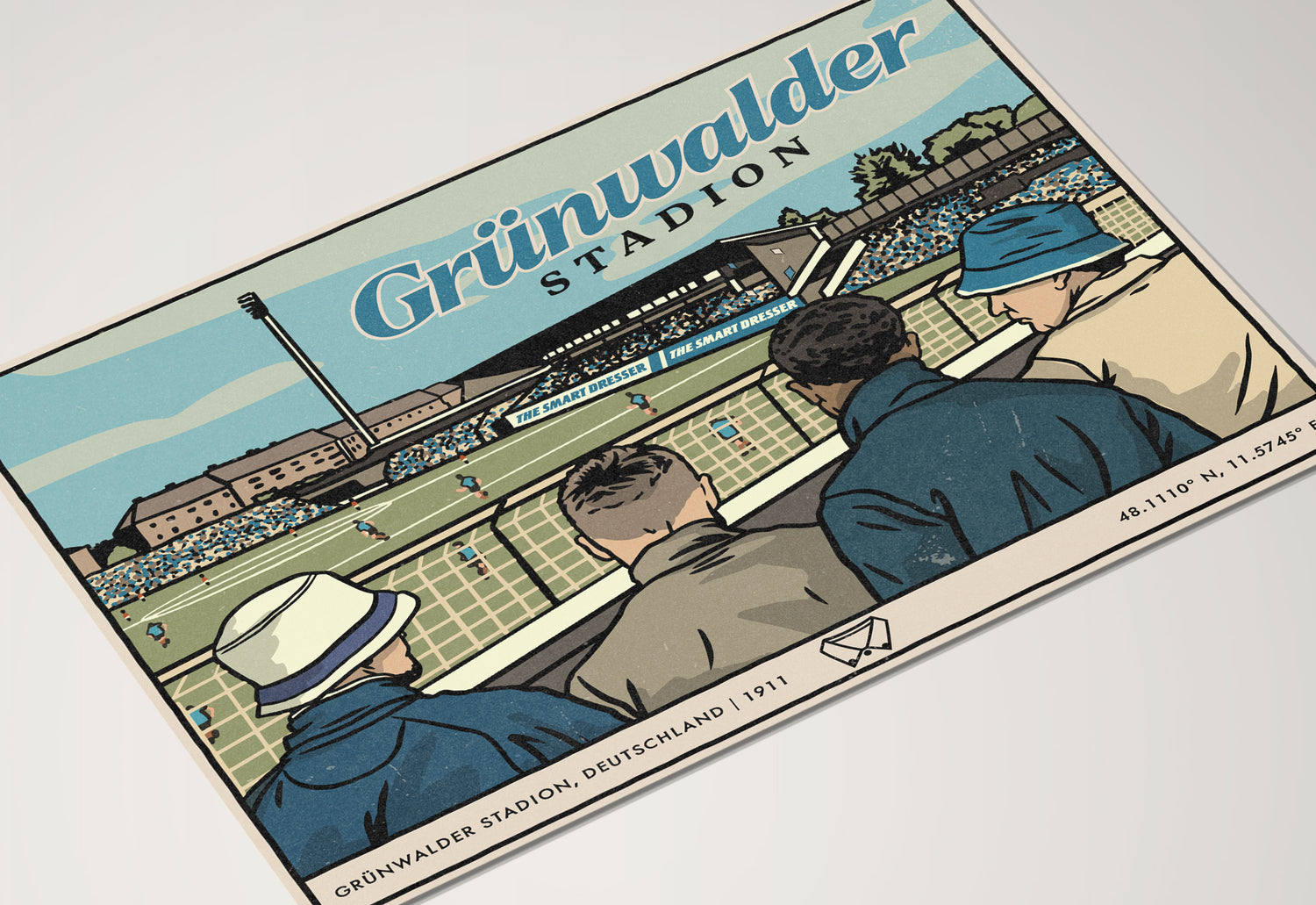 Seit Juni 2024 legen wir jeder Bestellung aus dem Onlineshop eine Stadion Sammelkarte in Form einer Postkarte kostenlos dazu.Auf der Vorderseite jeder Postkarte seht ihr ein ikonisches Stadion aus Deutschland, natürlich aus vergangenen Tagen. Fussball Stadien wie wir sie lieben und sie heute oft vermissen. Handgezeichnet von Gavin Parker Art & Design. Die Rückseite enthält alle wichtigen Information wie das Baujahr oder das Fassungsvermögen.Dabei wechseln wir das Stadionmotiv jeden Monat durch und freuen uns sehr, wenn ihr die Postkarten sammelt und nach 18 Monaten vollständig habt. Welches ikonische Stadion im nachfolgenden Monat an der Reihe ist, verraten wir natürlich immer erst am ersten jeden Monats. Ein wenig Spannung muss sein.The Smart Dresser - aus der Kurve, für die Kurve.