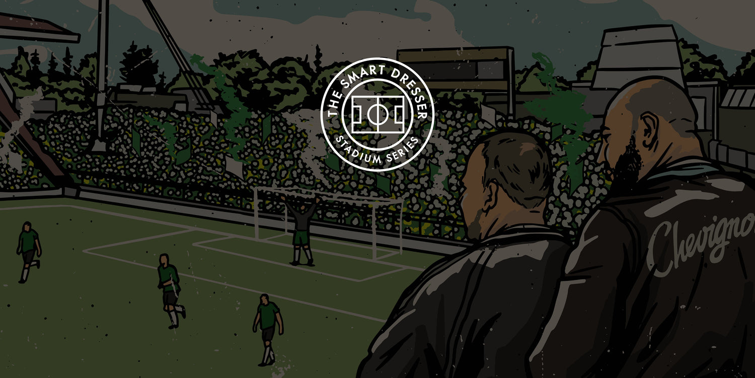 Seit Juni 2024 legen wir jeder Bestellung aus dem Onlineshop eine Stadion Sammelkarte in Form einer Postkarte kostenlos dazu.Auf der Vorderseite jeder Postkarte seht ihr ein ikonisches Stadion aus Deutschland, natürlich aus vergangenen Tagen. Fussball Stadien wie wir sie lieben und sie heute oft vermissen. Handgezeichnet von Gavin Parker Art & Design. Die Rückseite enthält alle wichtigen Information wie das Baujahr oder das Fassungsvermögen.Dabei wechseln wir das Stadionmotiv jeden Monat durch und freuen uns sehr, wenn ihr die Postkarten sammelt und nach 18 Monaten vollständig habt. Welches ikonische Stadion im nachfolgenden Monat an der Reihe ist, verraten wir natürlich immer erst am ersten jeden Monats. Ein wenig Spannung muss sein.The Smart Dresser - aus der Kurve, für die Kurve.